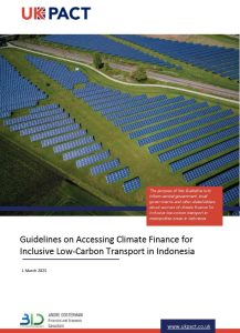 Dalam proyek ini, PT BID mengembangkan laporan tentang status pengetahuan tentang keuangan iklim di Indonesia, mengembangkan perangkat yang berisi pedoman dan rekomendasi tentang pembiayaan dan model bisnis yang dapat dilaksanakan untuk mendukung program transportasi rendah karbon di Indonesia, melaksanakan peningkatan kapasitas bagi penerima manfaat sasaran pada (1) lokakarya penulisan untuk mengembangkan proposal proyek yang bankable dan berhasil, catatan konsep, dan strategi lain untuk aplikasi yang berhasil, dan (2) instrumen pembiayaan iklim dan opsi pembiayaan inovatif – berbagai jenis, bentuk, persyaratan, dan mekanisme pendanaannya.