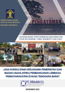 6. Penyusunan Dokumen FBC KPBU Pemanfaatan Lahan di NTB (Kemenkumham), bersama PT Ciriajasa Engineering Consultants dan Direktorat Jenderal Pemasyarakatan Kemenkumham (end user), Juli – Desember 2023